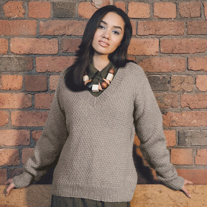 Rowan Montville designed by Amy Herzog is a classic slouchy sweater with a cardigan option. It would be a cozy and comfortable addition to the winter wardrobe that features a stylish textured stitch and v-neck. The pullover is knit in Rowan Kid Classic, a stunning blend of wool, mohair, and polyamide and the cardigan is knit in Rowan Hemp Tweed a wool and hemp blend that create ‘breathable' knitted fabrics which are cool to wear in warm weather and warm in colder temperatures. Hemp fiber is resistant to stretching, so does not distort with use and naturally softens with wear.