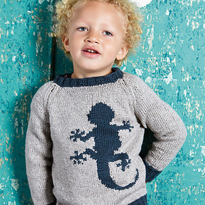 Rowan Newt designed by Martin Storey is available in a plain or two-color version which also features a lizard intarsia motif. This fantastic piece with the lizard intarsia motif is knit using two shades of Rowan Softyak DK blend of cotton, yak, and nylon that is incredibly soft and cuddly. The intarsia pattern is charted only.