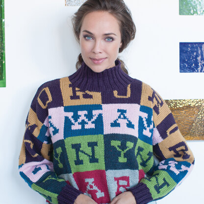 Rowan Yarns designed by Martin Storey is a colorful intarsia that can be knit up as a pullover or a V-neck cardigan. Both versions features drop shoulders that has a casual fit. These garments are knit in Rowan Pure Wool Worsted 100% superwash squishy wool.