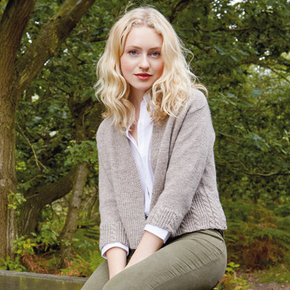 Rowan Skylark from Moordale is a knitting pattern for a women’s cardigan designed by Martin Storey. This fabulous shorter length cardigan has three-quarter sleeves and pretty cable edgings. This sweater is knit in pieces from the bottom up and then seamed together for stability. Knit in Rowan Moordale, a gorgeous blend of British wool and alpaca blend that is perfect for garments you’ll wear every day. This DK weight yarn boasts a color palette of soft heathered shades, which show off texture and cabled-stitch patterns wonderfully. The cable patterns are in chart form only.