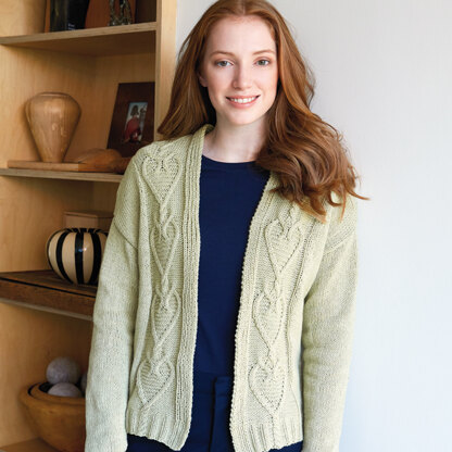 shoulder women’s cardigan that features beautiful heart cable panels down the