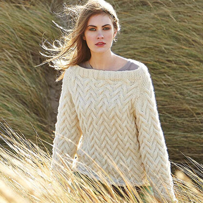 Rowan Swale is a women’s sweater with an all over cable pattern knit in