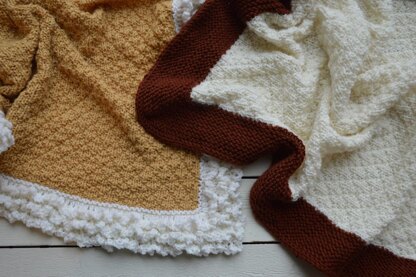 Roward is a simple, textured baby blanket pattern that is easy to memorize, and relaxing to make. The pattern featured a textured knit body and includes instructions for one version with a simple garter stitch edging and an I-cord bind off, as well as a second option of a crochet ruffle edging. It is a great project for twins! Knit up in Berroco Ultra Wool super wash merino, it makes for a soft, cozy blanket that can stand up to being washed frequently.