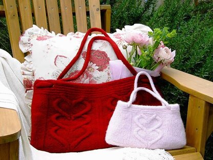 Make these two bags as a mother-daughter set, or use each as a separate project. Vary it up by using different colors—the simple structure allows for many different looks. Felted with 100% wool yarn, the large tote is knit sturdy with a double strand for a total of about 900 yds, and the dainty, small bag uses just one strand at about 200 yds, both on size 10 needles.