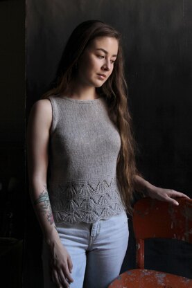 The body of this top is worked from bottom hem upwards as one seamless piece, worked in rounds. When you reach the armholes, the Back and Front are divided and worked separately in rows. Lace pattern is written out round by round.