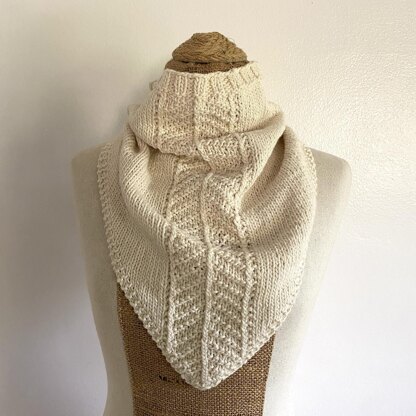 The Salt Marsh Bandana is a simple, quick, and fun-to-knit bandana cowl. Knit from the bottom up, flat, for the bandana portion, it then transitions to being knit in the round to work the cowl section. The Salt Marsh Bandana is a companion accessory to the Salt Marsh Pullover pattern and features the same textured chevron stitch pattern.