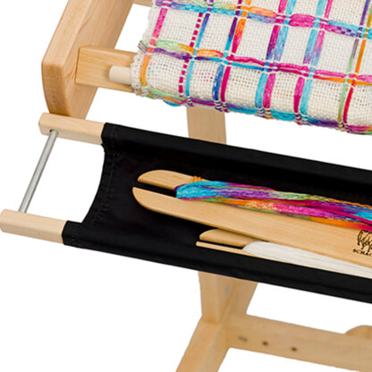 Schact's Flip Trap is a hammock for your weaving tools! Attach it into the clamp holes in the ends of your Flip Rigid Heddle Loom sides, and use it to hold your shuttle and extra bobbins. The Flip Trap is made of durable nylon canvas, suspended between hardwood bars. Once you have it, you'll wonder how you lived without it.