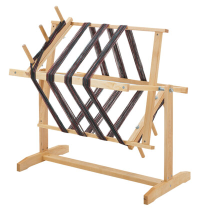 The Schacht Horizontal Warping Mill may be used either on a table or on the floor. Made of hard maple, this mill is smoothly sanded and given a Danish oil finish. 2 yard circumference, will hold up to 20 yards of warp, and can be folded for storage. Click here for assembly instructions for the Horizontal Warping Mill.
