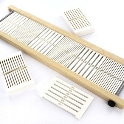 Now you can mix and match dents in your Flip or Cricket loom with Schacht Variable Dent Rigid Heddle Flip Loom Reeds. An assortment of rigid heddle reed sections (each measuring approximately 2.5" wide) in a variety of dents can be inserted into the special rigid heddle frame for different setts in the same reed. The Variable Dent Reeds are a great tool for creating different densities in a fabric as well as using thick and thin yarns in the warp. You'll think of lots of other uses as well. These reeds will have a total height of 4ВЅ" and a width of - - в…ќ".