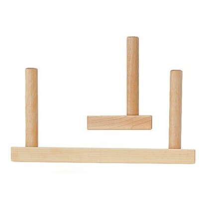 Warping Pegs are the simplest and most portable warp-measuring tools. They clamp to a table or counter; the single peg placed at one end of the warp length and the pair of pegs placed at the other end, spread as far apart as the warp is long. 2 C-clamps are now included!