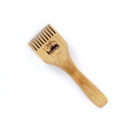 The Schacht Weighted Single-Ended Tapestry Beater is made of hard maple and has a smooth Danish oil finish. The wooden teeth are set at five per inch. The weighted beater has about five ounces of lead weight inserted into the end to provide more impact for tighter weaving.