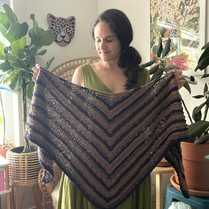 The Scrappy Shawl was born from the desire to use up odd leftover skeins of yarns from other projects. It is a simple triangle shawl that features stripes and intermittent garter stitch. Working the garter row every other WS row allows for an interesting color striping and gives the shawl a boho, patchwork look. The Scrappy Shawl pattern is meant to be more of a recipe; different weights of yarn and combinations of yarns made of different fibers can be combined, making for endless possibilities!