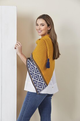 Sea Crossings is a colorful triangle shawl with an allover texture pattern bordered with slip-stitch colorwork in contrasting colors. Beginning at the tip and increasing up to the wide edge, this shawl includes an integrated I-cord edging along the body. Garter stitch mosaic colorwork finishes off the shawl with a beautiful geometric pattern and instructions are included for an optional tassel. This shawl is worked in [Valley Superwash Sport][1], a soft and smooth extrafine superwash Merino wool that is warm and machine-washable, making it a great choice for everyday garments.