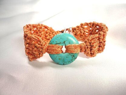 A beautiful drop stitch bracelet accented with a turquoise donut pendant (pictured).