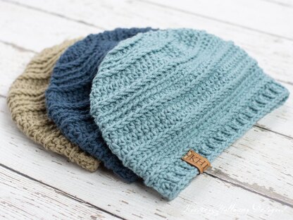 This pattern contains *two* simple men's hat patterns that work up quickly and are great for donating to shelters and organizations that help the needy. Caron One Pound is a thicker worsted weight yarn, so keep that in mind if you decide to substitute. The solid colored hat comes in 5 sizes, and the multi-colored hat comes in 2 sizes.