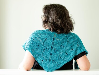 A light and little elongated triangle shawlette featuring an intriguing pattern of increases, decreases, and dropped stitches. Worked from the top down, beginning with a disappearing loop cast-on and ending with a picot bind-off. Uses approx 365m of fingering weight / 4ply yarn.