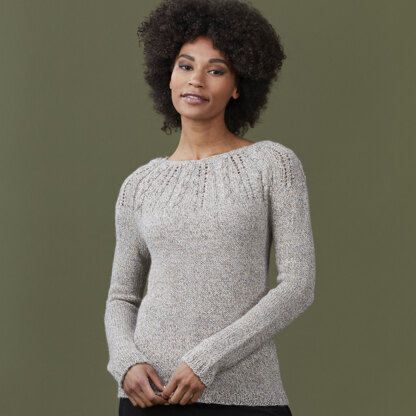 Alexandra Pullover from Sesia is a stunning women’s top-down seamless sweater knit in Pura Lana Ecologica. The pullover features a gorgeous lace and cable pattern on the yoke. With the yoke increases incorporated into the stitch pattern, this sweater has a graceful look that updates a classic silhouette. Pura Lana Ecologica is a soft blend of Merino wool and superfine alpaca, with the touch of a rustic look. This worsted-weight yarn is loosely plied, adding airiness and drape to the fabrics you create, making it a great match for Alexandra. The lace and cable pattern is in chart form only.