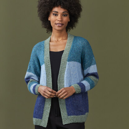 Sesia Josie Cardigan is a lovely and fun women’s striped sweater with an open front, dropped shoulders, and long sleeves knit in Bon Bon. This cozy cardigan is sure to be one of your staple pieces in your wardrobe. The sweater is knit in pieces from the bottom up and then seamed. Sesia Bon Bon is a stunning cotton, alpaca, and wool blend that is almost lighter than air.