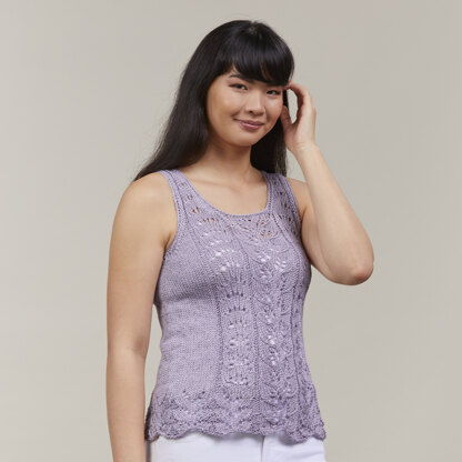 Sesia Roselyn Tank is the perfect summer sweater you’ll be wearing all year round. This lovely lace women’s pullover is excellent to wear under a suit jacket for the office, or wear it under a wrap on a date night, or wear it as is for an evening out dancing. Roselyn is knit in the round from the bottom up to the underarms and then divided and worked flat to the shoulders. Sesia Windsurf Lux is a 100% Egyptian cotton yarn with a metallic accent. This DK weight yarn is perfect for adding a touch of sparkle and shine to your spring and summer projects! The lace patterns are charted and written out.