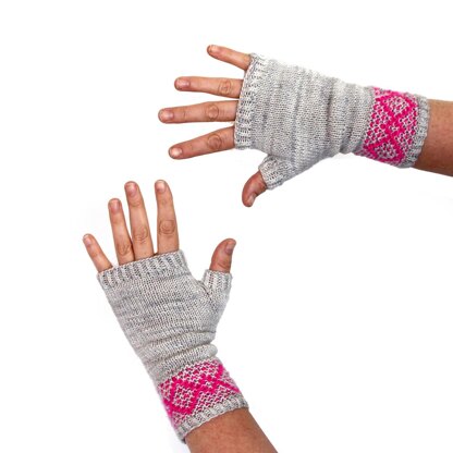 The Shine On Mitts are worked in the round, bottom up, with both charted and written instructions included.