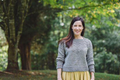 For the love of smocking! It makes such a beautiful sculptured pattern. Silven is a drop shoulder pullover with a split opening for the neck that has short rows along the top back to give a more comfortable fit at the front neck. It is made with Julie Asselin Nurtured, which shows off the smocking beautifully!
