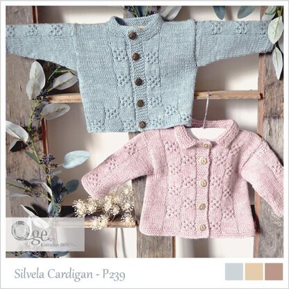 Cardigan is worked from the bottom up, to the underarms then split for Fronts and Back which are worked separately. Cardigan has 2 versions, Version 1 with a double decorative border running down the Front, and Version 2 has a single decorative border running down the Front and also has the decorative border along the hemline. Sleeves are worked separately for Option 1, or worked in the round by picking up stitches around the armhole opening for Option 2. You will pick up stitches around neckline. The pattern is suitable for the Intermediate knitter.