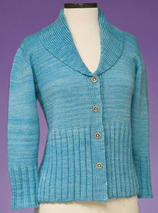 This gorgeous cardigan rates an experienced level because of the use of short row shaping in the collar and sleeve caps. If you’re comfortable with short rows, you’ll find this pattern a cinch. If you’ve not worked short rows before, give it a try; you’ll find it’s not hard at all, and the cardigan is well worth the effort!