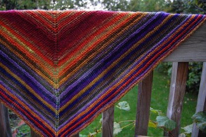 This is a modified version of my Simple Yet Effective shawl pattern, worked in Noro Kureyon Sock and a fun striped pattern. This mini shawl looks great in any sock yarn, especially handpaints and striping yarns.