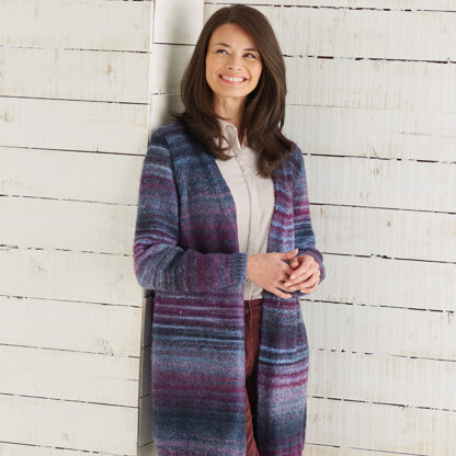 Sirdar Long Cardigan is a stunning women’s sweater perfect for any cold weather wardrobe. This timeless cardigan is worked flat in pieces from the bottom up and seamed, and Sirdar Jewelspun does all the hard work by creating stripes as you knit. This machine-washable garment is easy to care for and will look great for years to come!