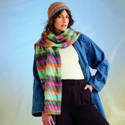 Cozy and colorful, the Sirdar 10710 Sea Breeze Hat & Scarf are a go-to accessory set for winter. Simple knit and purl texture creates a striking diagonal design that gets extra interest from the self-striping colorways of Jewelspun with Wool Chunky. This machine-washable blend of acrylic and wool has a handspun-inspired look that adds vibrant color to your finished projects. Both the hat and scarf are knit flat in one piece from the bottom up with ribbed trims framing the main textured section. The Sea Breeze Scarf is a seamless knit while a quick seam finishes the hat and has it ready to keep you cozy all winter! Choose your favorite colorway and cast on a cozy accessory set that you’ll reach for again and again when the winter chill has set in! Stitch pattern is written out only.