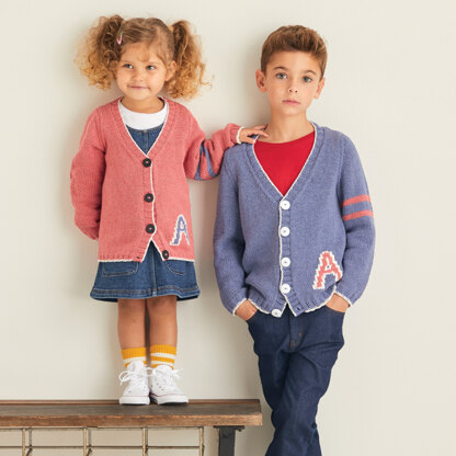 Sirdar 2535 Varsity Cardigan is a pint-sized version of a