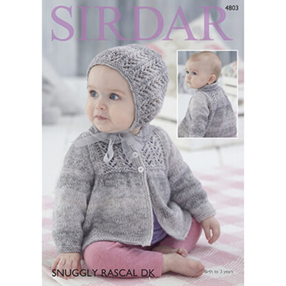 Sirdar 4801 Jacket & Bonnet pattern offers a lovely lace detail around the collar and back of the jacket, with the pattern matched in the bonnet, to create an adorable set. Knit in Sirdar Snuggly Rascal DK—a machine-washable blend of nylon and acrylic— this set will bring smiles to both parents and little ones alike.