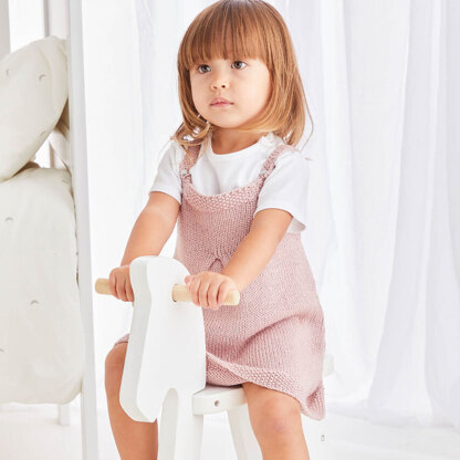 Sirdar 5481 Darted Baby Pinafore in Snuggly Baby Bamboo is a fabulous piece with our trendy moms in mind. The contemporary pinafore with matching Mary Jane’s knit in a simple moss stitch. The pinafore is the perfect layering piece for your special little girl. This piece is knit flat in pieces from the bottom up and then seamed. Sirdar Snuggly Baby Bamboo DK is a shimmery blend of natural, bamboo-sourced viscose and wool. This machine-washable yarn will make charming, sweet, and soft garments for your favorite little ones.