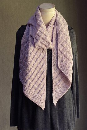 This pretty scarf is worked flat on the bias. It's completely reversible, and its simple yet interesting knit-purl stitch pattern makes it a perfect project for taking with you or getting into the zone right where you are.