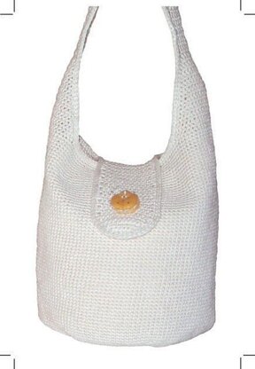 "Make this crochet bag and your friends and neighbours will think you're eco-conscious as well as fashion-wise," suggests Love. "A simple single crochet stitch is used and the bag works up quickly on a G/4.25mm hook. The edge is finished with slip stitch for a smooth ending, and the tab is closed with a button-- a 'secure' decorative feature. The pattern also includes directions for a four-pocket optional sewn lining. Its uses are endless and since color and trim is your decision, you won't see it coming and going to market! Pair it with the Sun Hat to Crochet." American crochet terminology. (from Patternfish description)