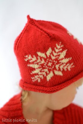 Knit this festive Snowflake Beanie to keep your little one cosy and warm in winter. The perfect Christmas hat that kids will love to wear!