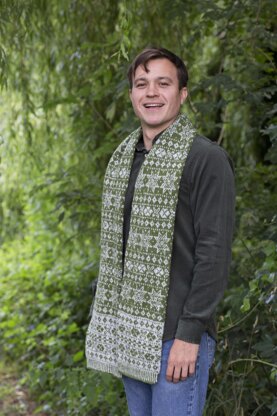 Cool unisex scarf with an attractive geometric Fairisle pattern worked in two colours of Rowan Felted Tweed DK only. It can be worked on double-pointed needles or a circular needle.