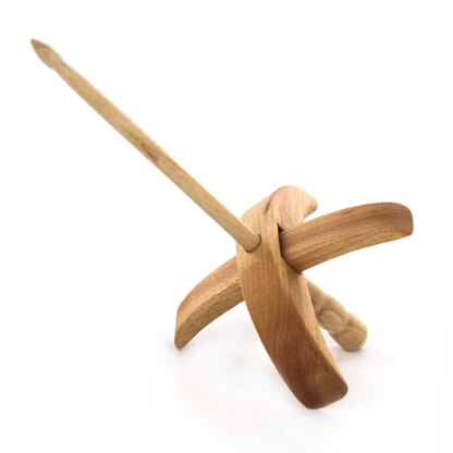 The Reekalf Turkish Spindle from Snyder Spindles is handmade from black walnut or maple. The arms measure 3.5" and the shaft is 6" long. The shafts have a small finial at the top to hold the half hitch. The "Reekalf" (Dutch for fawn) Turkish spindle weighs 0.8-0.9 oz (22–26g).