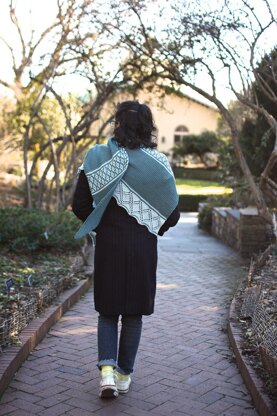 This two-color shawl begins with only a few stitches and increases in width to form an asymmetrical triangle. Each right side row increases the overall stitch count by 1 stitch.