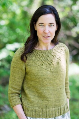 Cables, twisted stitches, bobbles and such come together to make the beautiful yoke of this pullover. It is so fun to knit and has a simple, versatile style. The sample was made with Julie Asselin Melange N.1 in the lovely colorway Vignes. It is so soft and lovely to work with and has great stitch definition!