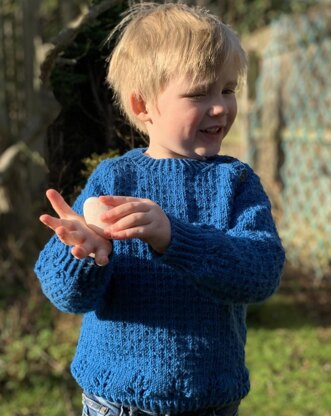 The Spruce Jumper has a simple all over, textured pattern, and a row of pine cones at the lower edges. There is a neck fastening for ease of dressing fastened with three buttonholes. Instructions are given for approximate ages 1-9 years. I used Debbie Bliss Rialto DK, a soft pure wool double knitting yarn in a fabulous range of colours but any good quality yarn of the same gauge would work.