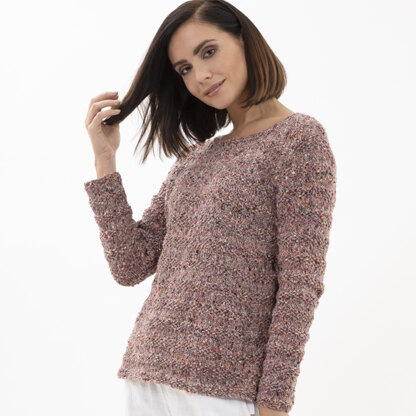 Esther Pullover is a classic and figure-flattering women’s sweater sure to become a wardrobe staple. This pullover is knit in pieces from the bottom up and seamed. Gemma is a unique tweedy blend of recycled fibers and polyamide with a chainette construction perfect for transitional projects.