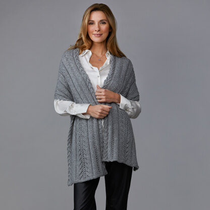 Cozy warmth and graceful style combine in the Stacy Charles Fine Yarns Oakleigh Wrap. knit flat from one end to the other, this wrap features cabled edges and alternating columns of lace and stockinette stitch. Merino wool blend Jewel brings softness, drape, and a subtle sparkle that adds elegance to your finished project and its chainette structure ensures that it’s lightweight too. Choose the Oakleigh Wrap for an accessory that elevates casual looks and enhances fancier ones with ease! Stitch patterns are written out only.