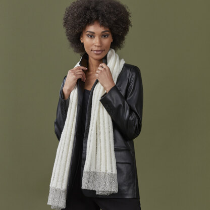 Stacy Charles Fine Yarns Peyton Scarf is a luxurious must-have women’s accessory with a simple drop stitch lace pattern knit in Megan and Crystal. The scarf is knit flat from the bottom up seamlessly. Megan by Stacy Charles Fine Yarns is a lightweight yarn with a bit of glitz, and Crystal has tiny sequins that provide a great touch of sparkle.