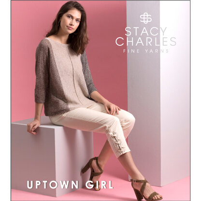 Stacy Charles Fine Yarns Uptown Girl of Spring/Summer 2018 embraces an enduring sense of style instilled with small, unique details—textural stripes, vented hems, stylish color blocking, horizontal knits, and more. Uptown Girl offers 12 fashion-forward patterns including lightweight pullovers, tees, tops, a cardigan, and a poncho in a contemporary palette of new and continuing Stacy Charles Fine Yarns such as Bio Lino, Bio Ondé, Lia, Nina, Patti, Ariana, and Safari.