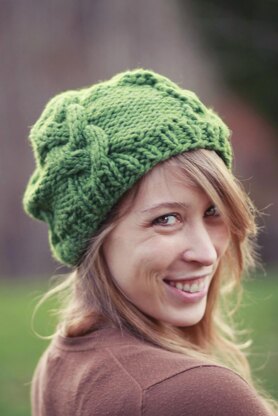 I have a dear friend that moved up to Boston and I wanted to make her a warm and cozy hat. Slouchy hats are great because they don’t give you hat hair which makes them perfect for wearing on your commute to work. Cables are always a classic so I chose them for the design element. Bulky yarn is cozy and knits up fast. Thus you have the Stephanie hat. The cables twist up the body of the hat to converge at the crown which can be worn pointing or slouchy. This hat does knit up fast making it a perfect choice for gifts.