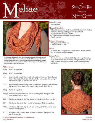 Stick Chick Knits Meliae PDF is a Knitting pattern by Melissa Goodale, available as a Downloadable PDF. Super fun to make, this pattern could be your next masterpiece!