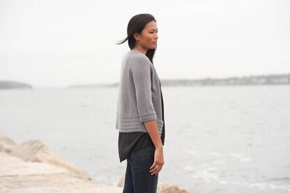 The sample is size 38 ¼" (95.5 cm) and knit in **Quince & Co.**Tern, shade Stonington.