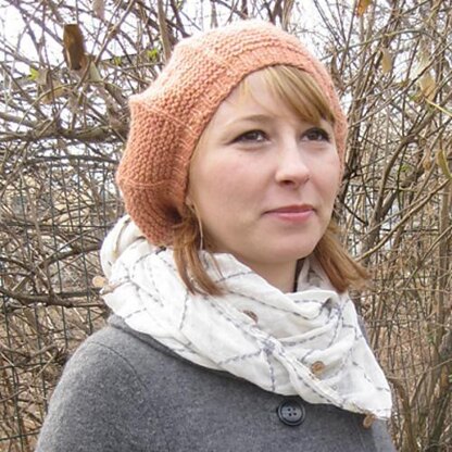 Sometimes classic is best! The knit and purl pattern on this beret creates a garter stitch body intersected by panels of knit stitches that come together with subtle decreases at the crown.