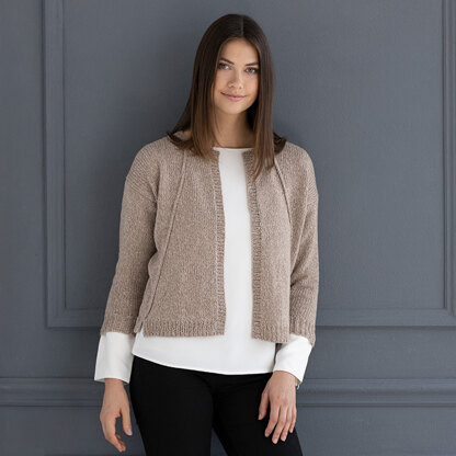 The Amber Cardigan is a totally unique construction for a sophisticated cropped cardigan. This hi-lo hem sweater will be an interesting knit and you can wear it with everything! Knit in pieces and then seamed.